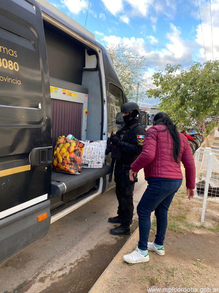 Posteriormente, en conjunto con personal del Servicio Penitenciario, dotaciones de la Fuerza desplegaron un operativo al ingreso del complejo penitenciario n° 2 “Adjuntor Andrés Abregú” de la ciudad de Cruz del Eje. Tras el trabajo de búsqueda de canes detectores y el registro de pertenencias por el escáner móvil, se decomisaron 125 dosis de cocaína y 48 dosis de marihuana.