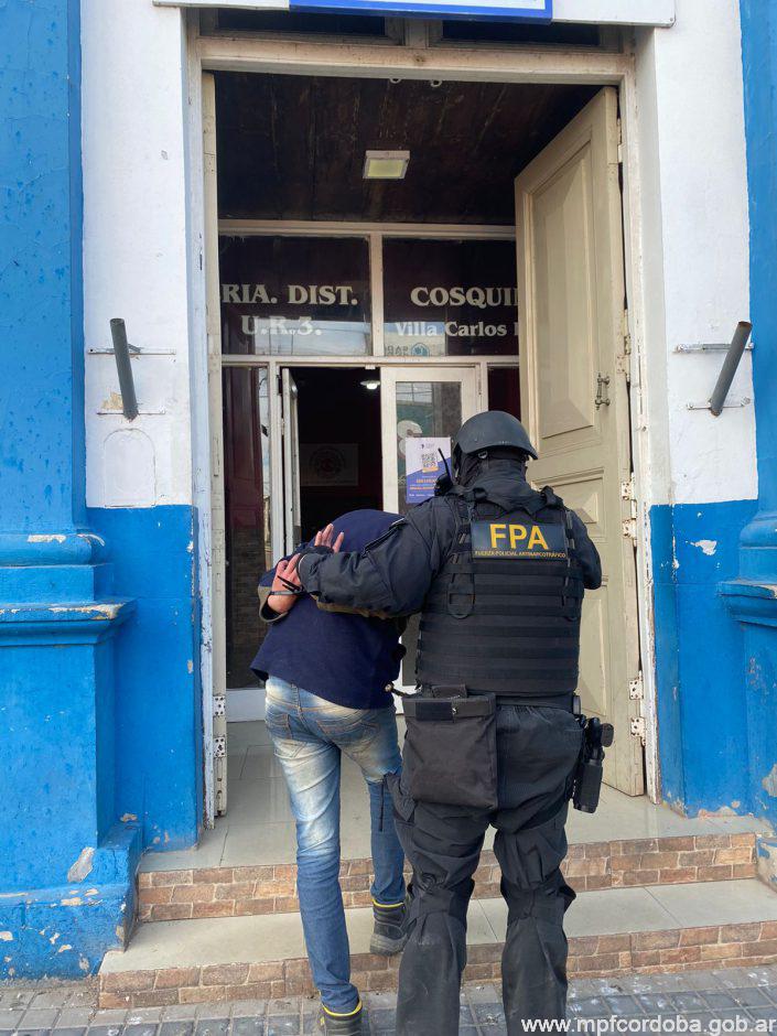 La totalidad del dispositivo estuvo supervisada por autoridades de la Fiscalía de Lucha Contra el Narcotráfico de Cosquín, quienes ordenaron el traslado del investigado a sede judicial por infracción a la Ley Nacional de Estupefacientes N°23.737.