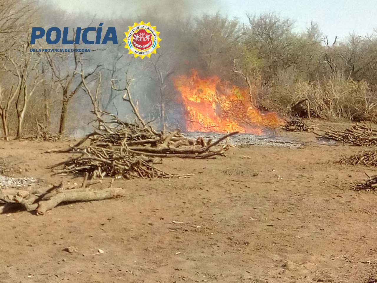 Mientras el personal policial patrullaba en zona rural, observó una columna de humo. Al llegar al lugar, se estableció que un hombre mayor de edad quemaba un montículo de ramas de desmonte. Se procedió a su aprehensión por el art. 186 del Código Penal.(Incendio doloso)