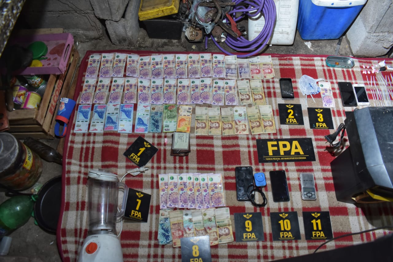 En los lugares se incautaron dosis de cocaína y marihuana, además de 144 mil pesos, seis rodados (dos autos y cuatro motocicletas) y diferentes elementos probatorios aparentemente relacionados al fraccionamiento y comercialización de las sustancias.