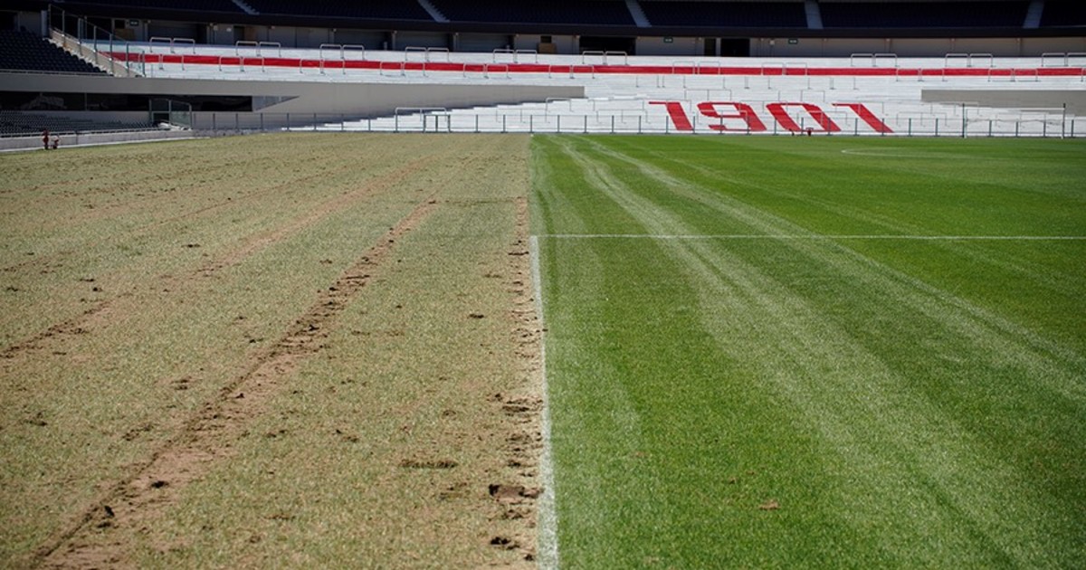 El campo de juego del estadio de River no llega en las mejores condiciones al superclásico de este domingo....