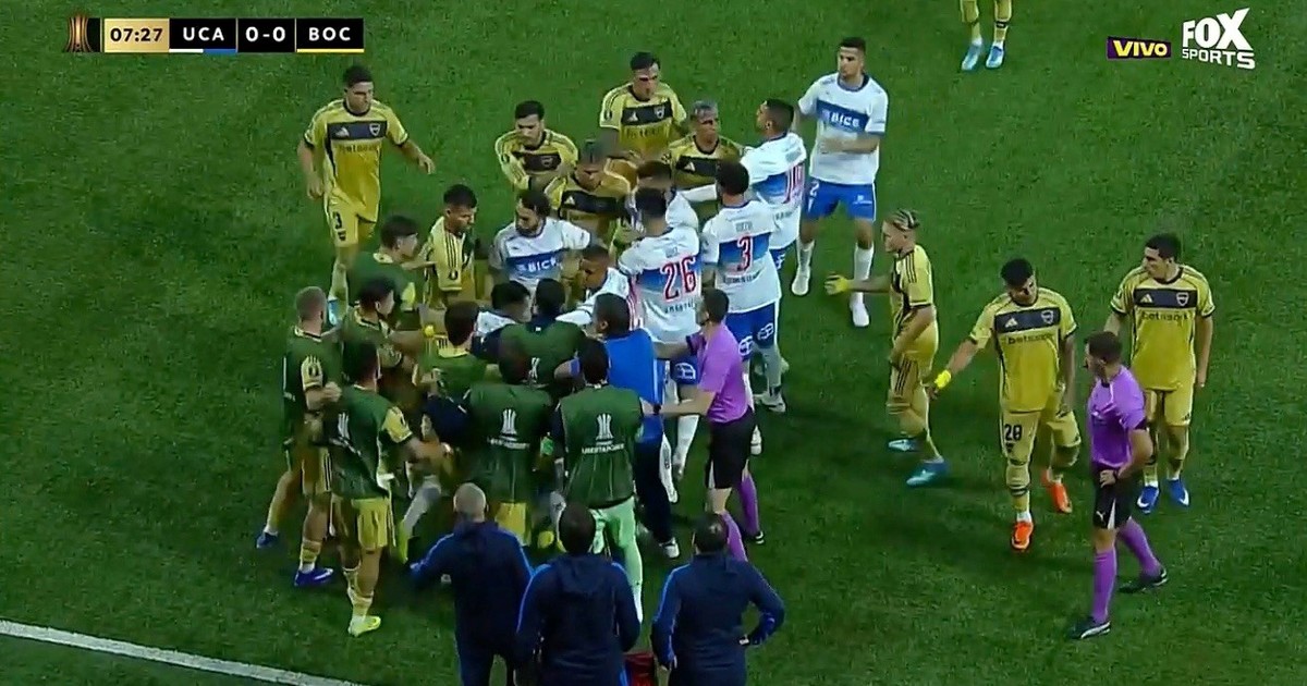 El lío entre los jugadores de Boca y U. Católica que derivó en la temprana amonestación para Paredes